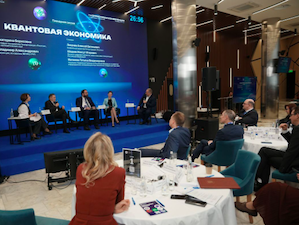Генеральный директор «Росатома» Алексей Лихачев, министр цифрового развития, связи и массовых коммуникаций РФ Максут Шадаев, начальник Управления Президента РФ по развитию информационно-коммуникационных технологий и инфраструктуры связи Татьяна Матвеева, директор по квантовым технологиям «Росатома» Екатерина Солнцева и другие участники обсудили стратегические перспективы отечественного «Квантового проекта» (призван объединить различных участников развития квантовых технологий, от ученых до промышленников, для стратегического лидерства в этой сфере).