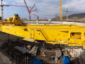 «Параллельно с предпусковыми пусконаладочными операциями на первом энергоблоке на других блоках АЭС “Аккую” интенсивно ведутся строительные, монтажные, тепломонтажные работы. Совсем недавно строители завершили бетонирование пятого яруса внутренней защитной оболочки. Операция заняла около шести часов, в непрерывном режиме было уложено 240 кубометров самоуплотняющегося бетона. После того как конструкция набрала необходимую прочность, мы смонтировали металлоконструкции моста полярного крана. Этот кран отличается очень высокой надежностью и дублированием подъемных механизмов – это необходимое условие для соблюдения стандартов ядерной безопасности», - сообщил генеральный директор «Аккую Нуклеар» Сергей Буцких.
