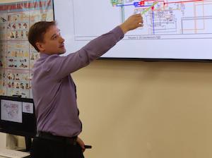 В рамках дисциплины «Автоматизированные системы оперативно-диспетчерского управления» диспетчер оперативно-диспетчерской службы Смоленского РДУ Олег Василашко впервые провел практикум для студентов по оперативным переключениям в электроустановках на тренажере СК-11 NOTS. Данный материал успешно внедрен в курс обучения.