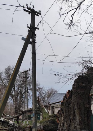 Так, в селе Рутул Рутульского района Республики Дагестан из‑за сильного ветра, сорвавшего кровлю стоящего неподалеку здания, произошла поломка опоры линии электропередачи 10 кВ. (на фото)