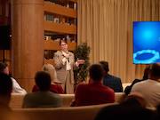 С докладом о подключении объектов к электрическим сетям выступили два эксперта «Россети Московский регион»: директор по контролю деятельности по технологическому присоединению и клиентскому обслуживанию Алиса Манака и начальник управления по развитию проектов поддержки предпринимательства Татьяна Баранова.