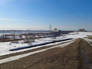 Нижегородский гидроузел имеет самую большую протяженность напорных гидротехнических сооружений в России. Суммарная длина сооружений составляет 18,6 км при длине напорного фронта 13 332 м. Для возведения ГЭС потребовалось около 1,5 млн кубометров железобетона, 48 000 тонн оборудования и металлоконструкций, миллионы кубических метров земляных и гравийных работ.